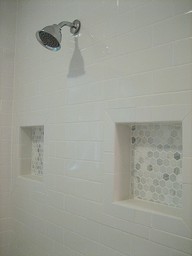 On the shower floor I am going with a 1" hexagon. This will also be used as a accent in the shower shelves that we are putting in.